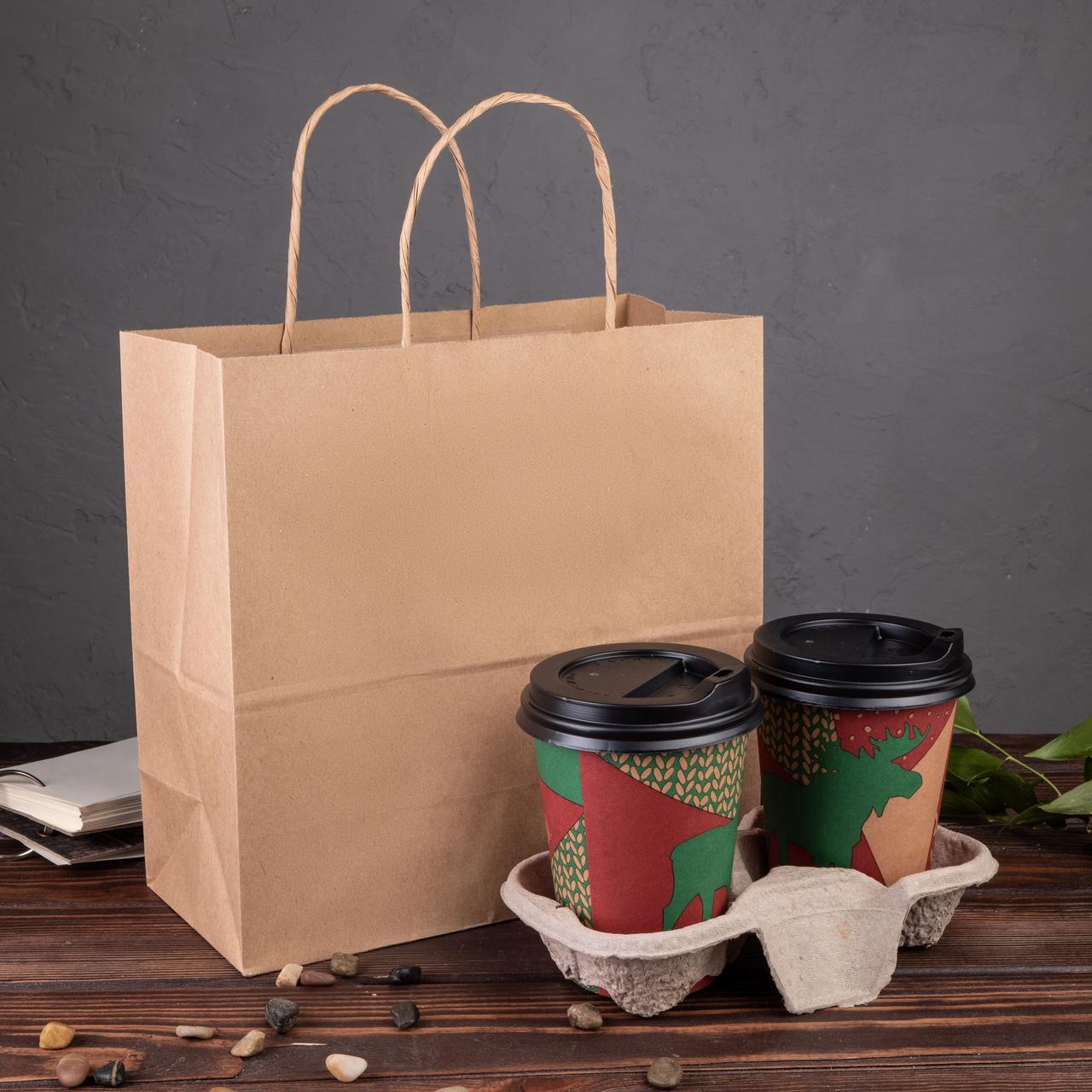 Міцний екологічно чистий крафт пакет коричневого кольору з ручками